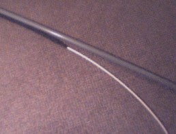 Experimentando, descubrí que, en realidad, quería la antena un poco corta. Insertarla en su tubo la alargó un poco, probablemente debido al efecto dieléctrico del plástico. Así que, si el primer corte que hagas es demasiado corto, detente y pruébalo en el tubo; probablemente tenga la longitud exacta que necesitas. A la izquierda se muestra una imagen de la antena lista para ensamblar y poner en funcionamiento. Observe que he colocado un tubo termorretráctil sobre la parte de la malla de la antena. Esto es para evitar que se mueva después del ensamblaje; la cinta de vinilo también debería funcionar. Si la malla se mueve dentro de la carcasa, la ROE se verá afectada.
